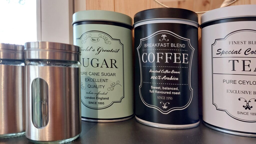 - De kitchenette is compleet ingericht met potten en pannen, vierdelig servies, bestek, keukengereedschap, tweepits gaskookplaat, afzuigkap, koelkast, waterkoker en filterkoffiezetapparaat.